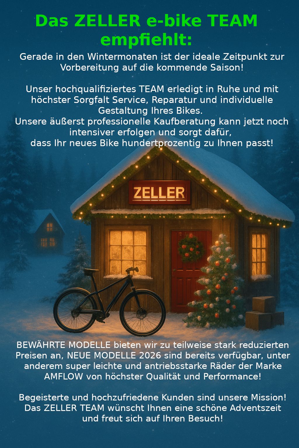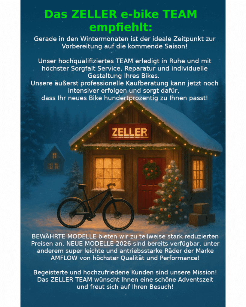BEWÄHRTE MODELLE bieten wir zu teilweise stark reduzierten Preisen an, NEUE MODELLE 2026 sind bereits verfügbar, unter anderem super leichte und antriebsstarke Räder der Marke AMFLOW von höchster Qualität und Performance!
