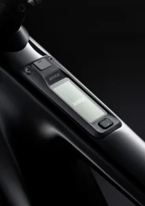 Das Herzstück des Avinox Drive Systems ist das Kontrolldisplay. Dieser 2-Zoll-OLED-Vollfarb-Touchscreen ist direkt in den Rahmen integriert. Es zeigt die Fahrdaten und die geschätzte Reichweite in Echtzeit an und ermöglicht einen schnellen Wechsel der Displayinhalte mit einem Wisch.